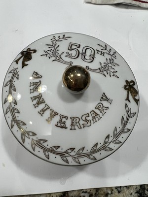 Lefton China 50th Anniversary 3 footed candy trinket dish bowl with lid hand painted Gold trimmed candy dish Lefton China Japan Sticker,Stamped Lefton ... more red seal and numbered# 2606 no damage
